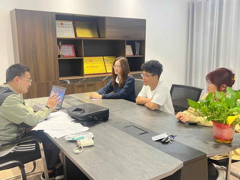 5支团队逐次与评委一对一深度洽谈,通过PPT演示、实物展示、口述等多种形式汇报创业项目的经营范围、运营现状、盈利情况、发展规划等。随后评委老师对项目发展前景做出诊断评估,并对项目发展过程中可能出现的问题及需要规避的风险给出合理的意见和建议。
