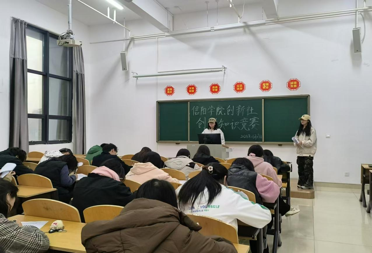 信阳学院创新社2024年11月17日在综合楼205成功举办创新知识竞赛,吸引了众多创新社成员参与。