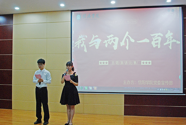 土木工程学院芦颖奇的《祖国,未来与你有个约》彰显着新时代大学生“天下兴亡、匹夫有责”的使命担当;数学与信息学院张民强的《两个一百年,你我共成长》表达了实现国家富强和民族振兴的坚定决心;理工学院王贝贝的《新时代新青年,我与祖国共奋进》展现了新青年为祖国发展做出的突出贡献;音乐学院邵圆圆的《我与“两个一百年”并肩同行》表示要不忘初心、牢记使命,与祖国并肩同行;商学院王家宝的《负重前行81192》讲述了英雄王伟保卫国家南海空中主权的英勇事迹。外国语学院崔润东的《中国梦,百年梦,青年梦》深切表达了青年是时代发展的有生力量。美术与设计学院申楠的《用激情放飞梦想之歌》引用诸葛亮等人的伟绩,表明中国的崛起和民族的强盛离不开崇高梦想。社会科学学院王超亚的《百年大计,青年担当》展现了中华民族历经沧桑而不衰、千锤百炼而斗志昂扬。文学院李云辉的《走进青春新时代,书写时代新篇章》表示祖国发展需要全党和全国人民付出巨大努力。最后,比赛在王婷婷同学的歌曲《天耀中华》中圆满落幕。