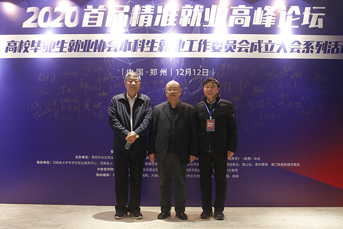 12月12日,2020首届“精准就业高峰论坛”暨全国高校毕业生就业工作协会本科生就业工作委员会成立大会系列活动在郑州隆重举行。来自教育部、河南省教育厅、省内外高等学府、国内知名企业、教育研究机构等200余名领导、专家、学者、企业代表共同参加了本次论坛。我校专职副书记施昌海受邀出席会议,招生就业处干事秦金峰随行参加会议。