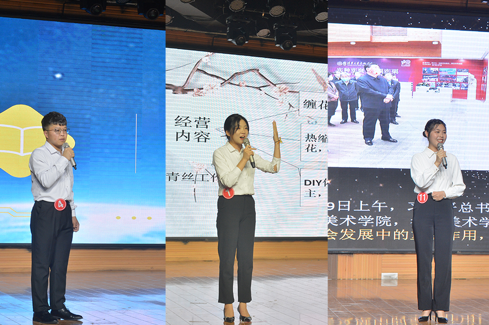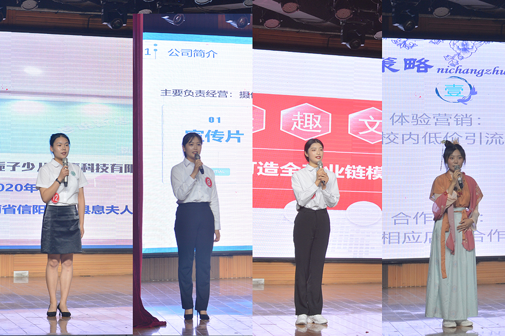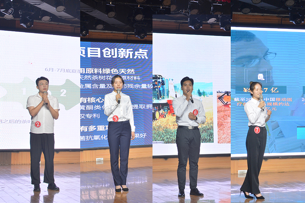 经过2个小时的激烈角逐,最终大数据与人工智能学院“晴朗影视创意——红色新时代,校园影视文化开创者”项目获得一等奖;教育学院“梦里有青丝——手工艺非遗文创产品开发”、理工学院“N&P克星小水芹——氮磷水体处理新航向”、美术与设计学院“千百度壁画”等3个项目获得二等奖;数学与统计学院“春晨采茶工就业基站——助力乡村振兴”、理工学院“洗衣新革命——茶树花抑菌洗衣液”、商学院“科技兴农,助力乡村振兴——田间智能管理机器人”、外国语学院“友医在线——可信赖的线上问诊服务平台”、文学院“浪潮影视传媒——掀起5G时代洪流的巨浪”、社会科学学院“霓裳妆造——汉文化宣传与体验”、文学院“墨趣红色旅游——打造全产业链模式红色旅游新业态”、教育学院“栀子口才——新时代少儿口才培训引领者”等8个项目获得三等奖。