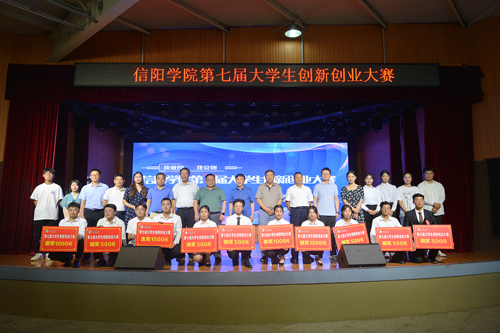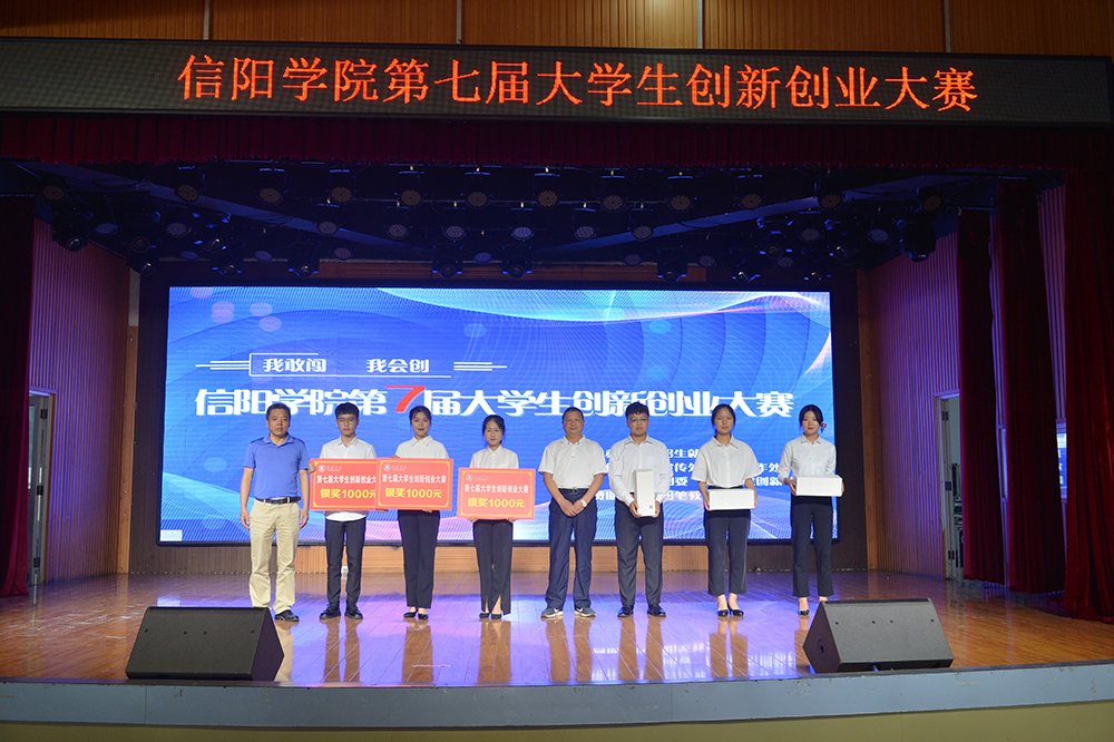 6月15日下午,“我敢闯 我会创”——信阳学院第七届大学生创新创业大赛决赛在学校大学生活动中心圆满举办。河南省大中专毕业生就业促进会副会长李建伟,信阳市科技局党组成员、副局长杨力,信阳市人社局四级调研员易援民,浉河区工信局副局长董方红,信阳市科技创新服务中心创新创业服务部主任林雨,黄河科技学院大学科技园主任蒋华勤,信阳市航信测控技术有限公司总经理李建国,粉笔教育河南分校教研校长刘婉霞,信阳粉笔教育校长张永军,我校党委专职副书记施昌海,校长助理杨高伟作为嘉宾和评委,出席了大赛。学校宣传部、团委等部门负责人一同担任评委,招生就业处负责人,各学院党总支书记、辅导员和学生代表现场观摩了大赛。