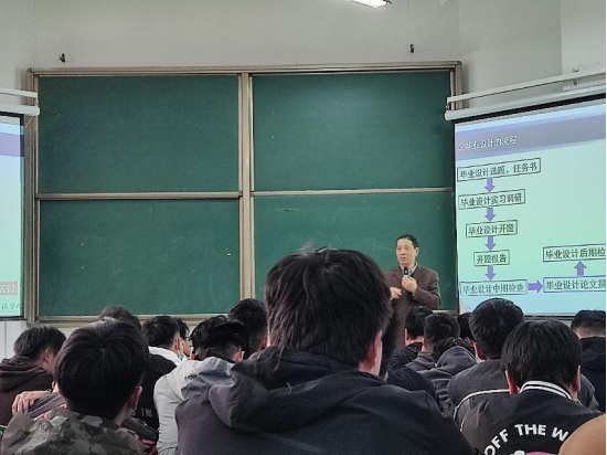会上,毕业班辅导员颜欢就毕业生就业政策、求职应聘技巧、就业协议书填写等进行了全面详细的讲解;毕业班辅导员徐国文就毕业生毕业手续办理、毕业生应征入伍、党团关系转接等毕业生事宜做了安排;教学副院长李晓严就毕业生教学事务进行安排;最后由肖生发院长和张秋平博士就工科、理科毕业论文写作分别进行详细指导。其中肖生发通过红烧肉的做法生动形象的向工科的毕业生们讲述了本科论文、硕士论文、博士论文的特点,以及在写论文和后期论文答辩时要注意的方面。张秋平则对理科的学生们从论文的结构、摘要撰写等方面详细的讲述了毕业论文的写作方法和技巧。