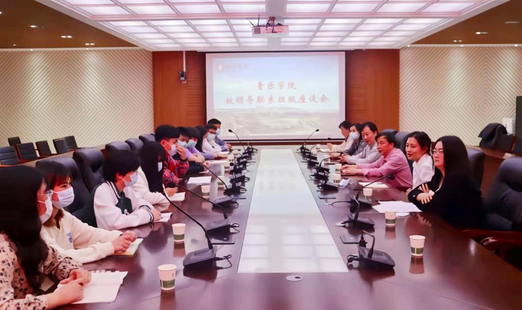 3月16日下午,音乐学院在人文楼208会议室开展了校领导联系班级座谈会。校党委专职副书记施昌海,音乐学院院长王凯歌,宣传部部长李肖利,音乐学院党总支副书记赵佳、学工秘书李平、辅导员樊丽及2020级音乐学本科2班学生代表参加了座谈。座谈会由赵佳主持。