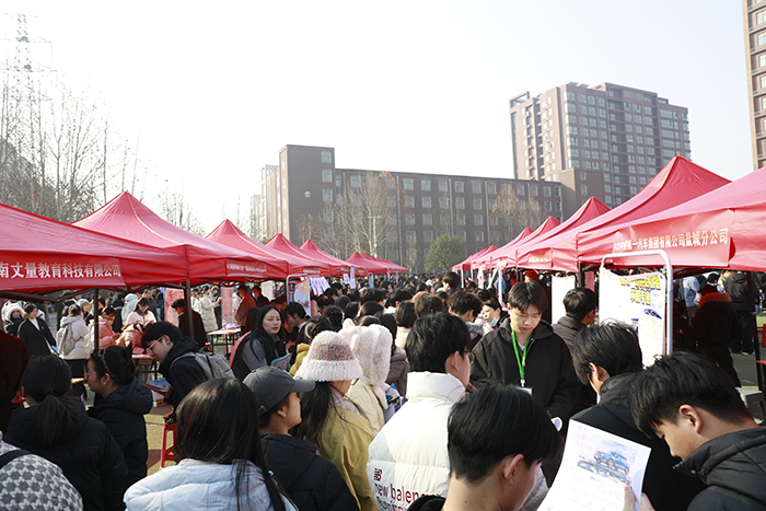 12月5日,“豫荐未来 青春启航”信阳学院2026届毕业生冬季就业双向选择洽谈会(以下简称“双选会”)在我校浉河校区西操场成功举办。本次“双选会”由我校和信阳市人力资源和社会保障局主办,信阳市就业创业服务中心和浉河区人力资源和社会保障局承办。在“双选会”现场,学校理事长高云及全体在校领导分别与用人单位代表和毕业生亲切交流,了解岗位供需对接情况,并勉励毕业生积极把握就业机会。各二级学院党政负责人及毕业班辅导员在现场与用人单位对接洽谈,积极推介毕业生。
