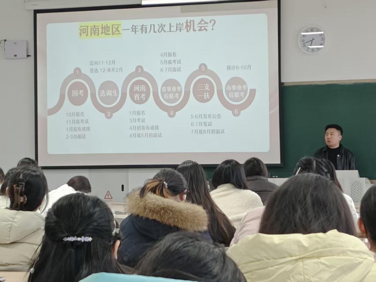 12月8日,面对激烈就业竞争,公务员岗位成为外语专业学子热门选择,但备考中存在行测刷题效率低、申论立意偏差等痛点,且面临政策信息滞后、缺乏专业规划等困境。为破解难题,外国语学院特邀公考资深专家冯老师开展“考公考编 上岸计划”专题讲座。