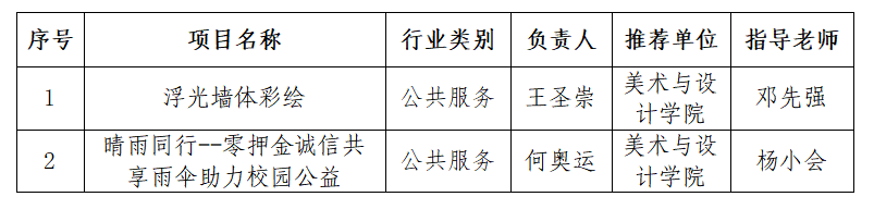 2025年4月,经创业团队申请、学院推荐、项目现场路演答辩、学校评审等程序,拟确定2个项目入驻学校众创空间,现将名单(附后)进行公示,自公示之日起三日内,如对入驻项目有异议,可以书面形式提出。须在异议材料上签署真实姓名,并写明联系电话。不符合上述要求的异议,不予受理。
