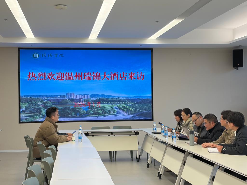 为深入贯彻落实学校毕业生就业创业工作会议精神,拓宽2026届毕业生就业渠道,1月13日下午,商学院在教三楼530会议室开展“访企拓岗”校企对接交流活动,热情接待温州瑞锦大酒店有限公司企业代表叶俊理一行。商学院党总支书记胡秀云、副院长吴新静、党总支副书记花端阳,就业服务小组负责教师等出席会议。