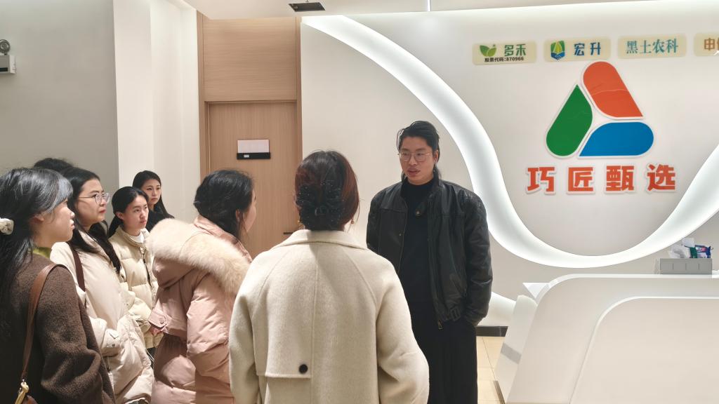 在信阳新经济投资有限责任公司,负责人薛经理介绍了青创中心电商小镇的整体规划、运营模式以及电商企业孵化、电商人才培养等领域的成果。双方围绕电子商务专业人才培养方案优化、实习实训基地共建、校企合作项目开发等展开深入研讨。花端阳副书记介绍了商学院专业设置、师资优势及人才培养特色,表达了与企业建立长期合作的意愿,希望通过校企联动为学生搭建优质实习就业平台,同时为企业输送高素质应用型人才。座谈后,随行学生在企业负责人的安排下,开展“青读兴农”团体电商直播实践活动,凭借扎实的专业基础和良好的实践表现获得了企业代表的一致认可。